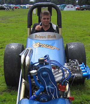 up for the weekend ahead. After everything is set up, I normally retire to the clubhouse for a few beers. I get up in the morning around 8:30 - 9:00 am. The first thing I do is take the tyre pressure down to 4.5 psi. Then I check the fuel level. Then I basically wait until racing starts. Depending on how many cars are in the fire-up lane determines where I strap Dad in. Before strapping Dad in I have to pull the fuel mask tight. As soon as the mask and helmet are on, communication is impaired. The only real way to communicate is for Dad to point at things. A lot of things run through my mind at this point - mainly stuff I know I have done but am trying to recap to make sure. At this point in the fire-up road, when we are getting close to the front of the queue, I'm slightly on edge, my blood racing slightly; and a few last glances at certain parts. As soon as Dad gives the signal, I take the Fairy Liquid bottle (full up with petrol) and squirt some down each of the trumpets. The engine is fired and I follow Dad around to the burnout box. As Dad accelerates I run after him and when he's stopped, I back him onto the tracks he's just made. When he has backed up, I point at Dad to make sure the car is in neutral so I can remove the parachute pin. When the pin is removed, I wave the pin in Dad's face for his peace of mind. Dad brings the dragster up to the line, then he's on his own! When we go to the top end to collect him, the first thing I do when I get there is tell Dad the E.T., then we tow him back. We change the oil every other run, and fill up the tank with methanol when needed. Then after all the work is done, it's time to drink beer, eat food and socialise. P.S. . I ran my own Rover-powered altered, “Dazed & Confused” and raced with the Wild Bunch during 2004 (when I won a “Best Altered” Spot Prize) and 2005, running a best of 12.14 at 113mph. I really enjoyed running against Dad and Mark at a few events! Since then I have taken a few years off whilst raising a family, , and we had a new addition last May, a daughter to join our two sons! In the last year I have been building up a blown engine for my altered, so we hope to be back in the not-too-distant future! | |